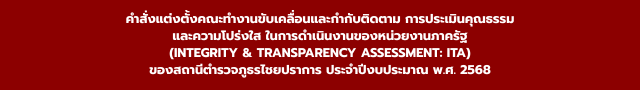 admin 0 สถานีตำรวจภูธรไชยปราการ ขับเคลื่อนการประเมินคุณธรรมและความโปร่งใสในการดำเนินงานของหน่วยงานภาครัฐ (Integrity and Transparency Assessment: ITA)ของสถานีตำรวจประจำปีงบประมาณ พ.ศ. 2568