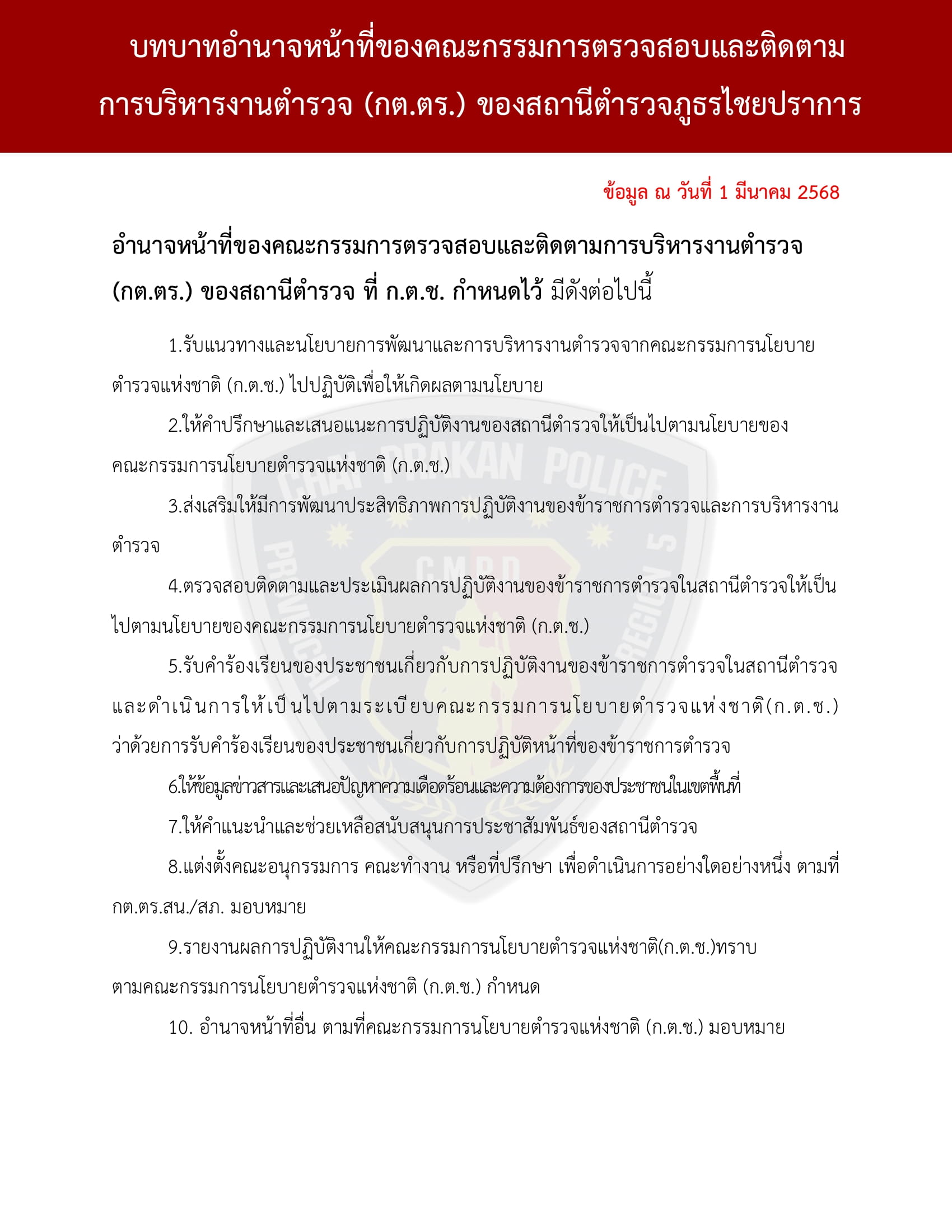 ข้อมูลคณะกรรมการตรวจสอบและติดตามการบริหารงานตำรวจ (กต.ตร.) ของสถานีตำรวจ